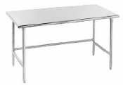 Advance Tabco 16-Gauge Stainless Steel Top - Flat Top w/ Open Base - Model TMS-364 Durable worktable is constructed of Type 304 stainless steel. Tabletop has rounded front and rear edges, and the sides are turned down on a 90 degrees angle for easy alignment with other equipment. Height: 88.9cm (35"). Leg diameter: 3.8cm (15/8"). ...