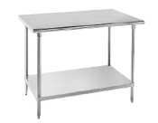 Advance Tabco 16-Gauge Stainless Steel Top - Flat Top w/ Undershelf - Model MS-306 Durable worktable is constructed of Type 304 stainless steel. Tabletop has rounded front and rear edges, and the sides are turned down on a 90 degrees angle for easy alignment with other equipment. Adjustable undershelf is 18-gauge stainless steel. ...